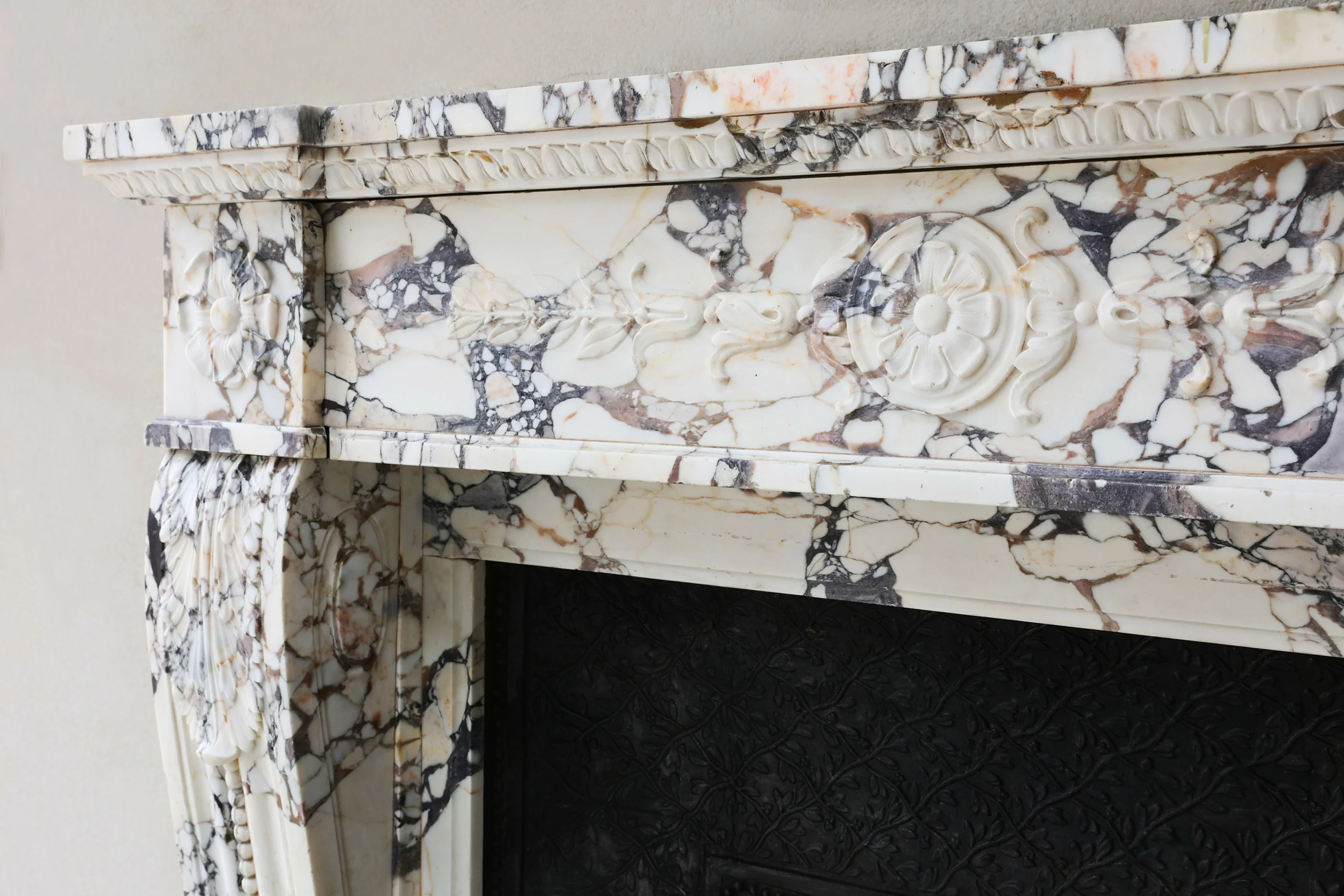The marble used for this fireplace is a true highlight. It comes from the Lucca region in Italy and is known for its unique patterns and natural elegance. Breche Médicis marble is no longer widely available, making this piece especially rare and valuable.