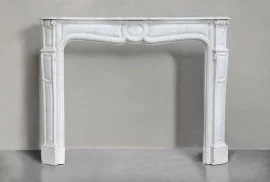 Beautiful compact antique mantelpiece made of Carrara marble from the 19th century! This graceful mantle is in Pompadour style, characterized by the round ornament in the center of the front part.