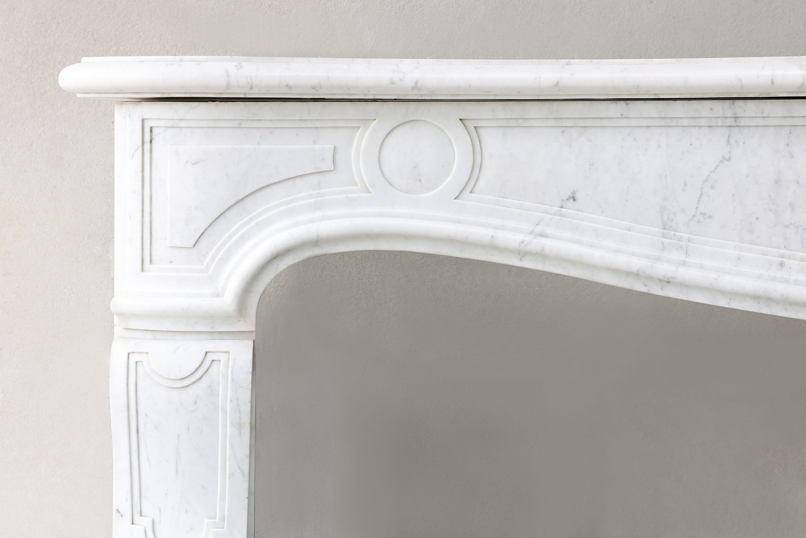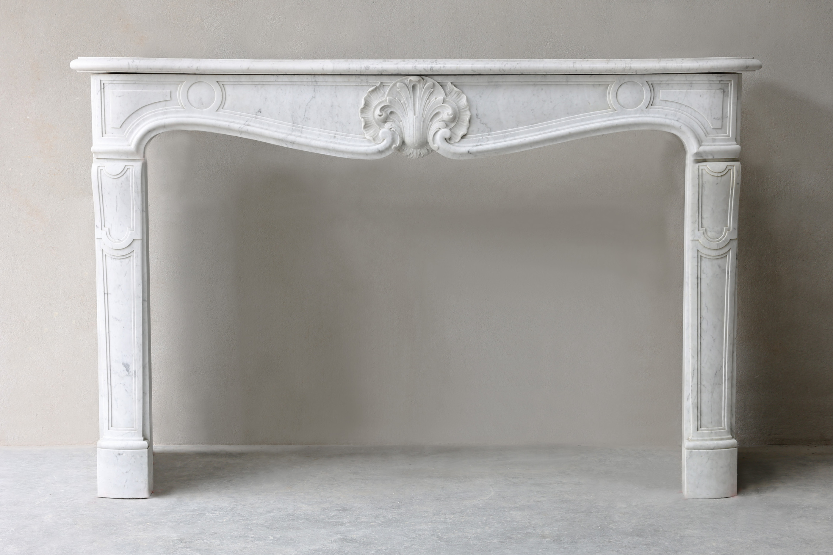 Are you looking for an exceptional antique fireplace that adds elegance, authenticity, and refinement to your interior? This stunning French Louis XV fireplace, crafted from bright white Carrara marble, is a timeless masterpiece reminiscent of classic French interiors.