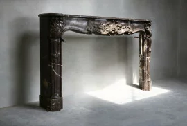 Exclusive and antique fireplace of Marbre de Boulogne. This type of marble comes from France and has a calm appearance with light veins. The mantelpiece is in the style of Louis XV from the 19th century and has 'trois scallops' (three shells) in the front part. A very beautiful fireplace, both in shape and appearance and warm color scheme!