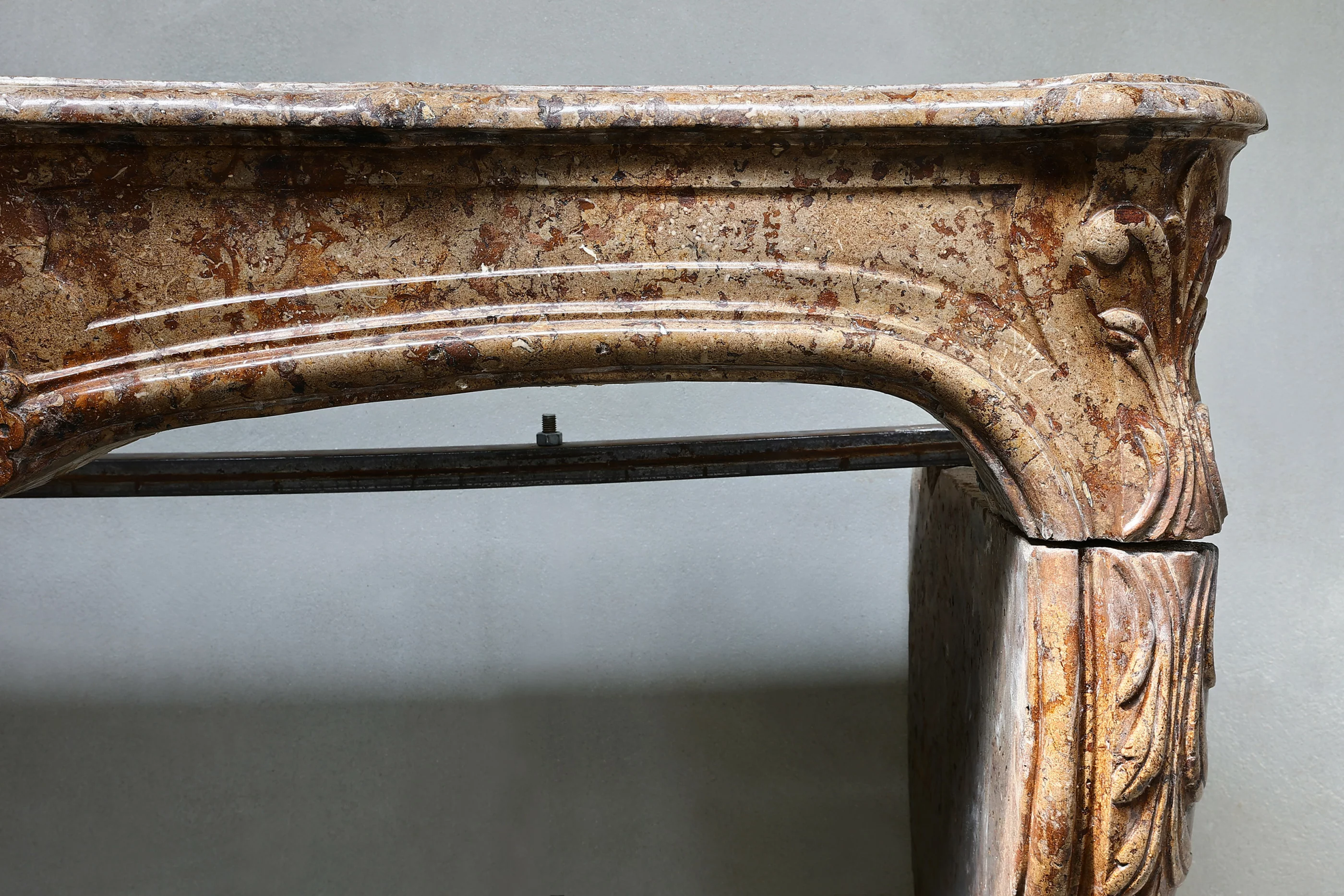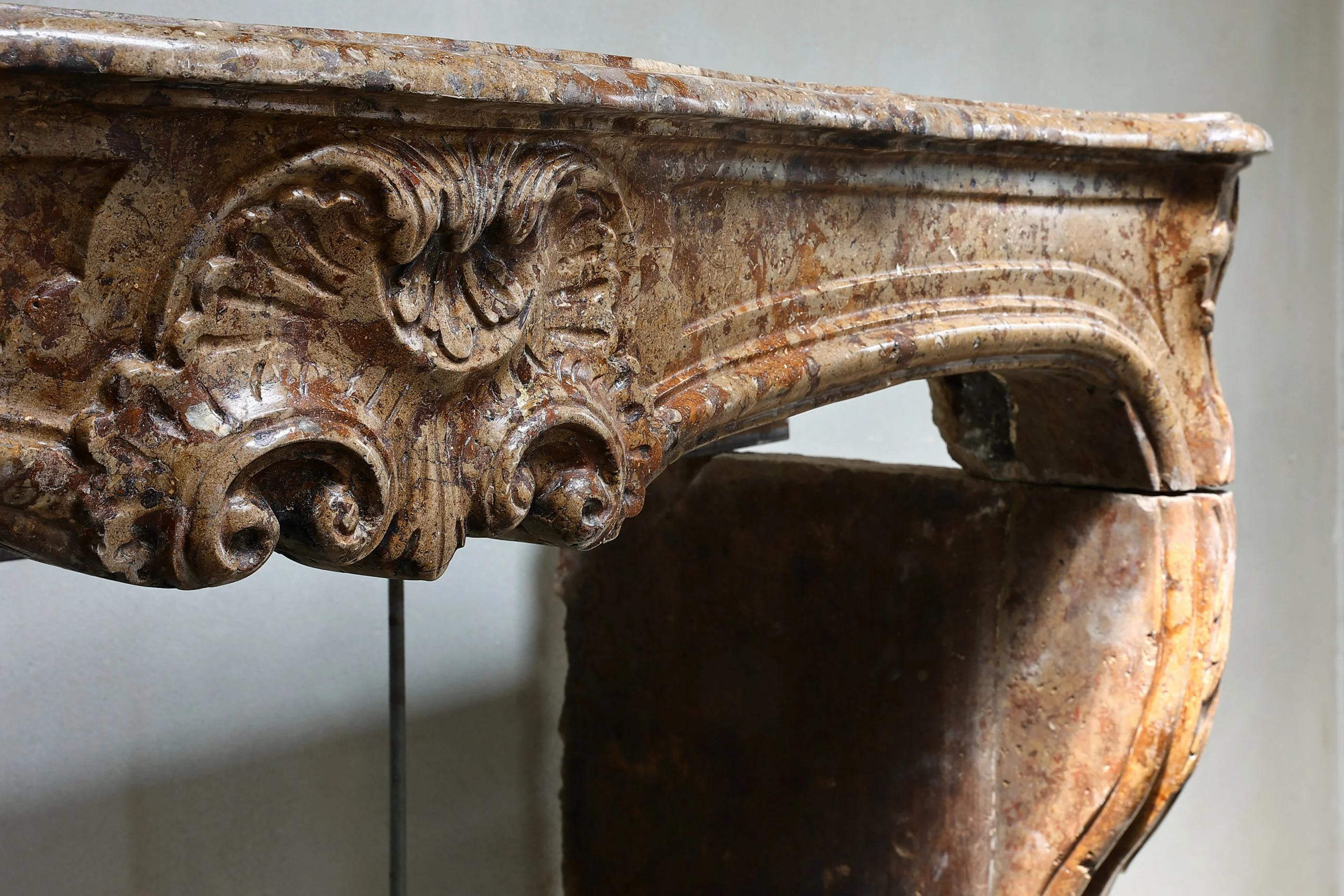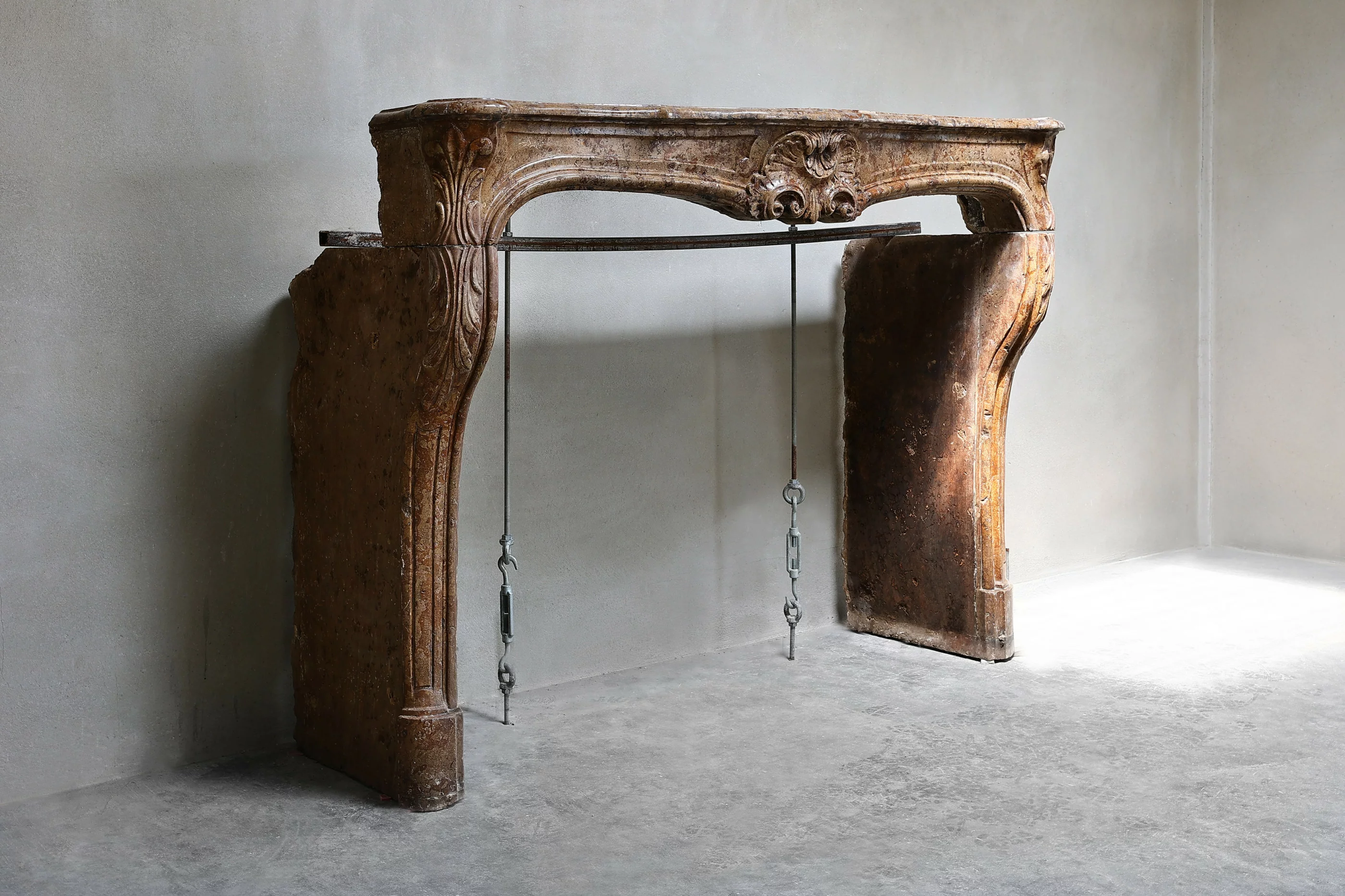 Marblestone from Burgundy brings a refined warmth, ideal for interiors that blend historical depth with contemporary sensibilities. The Louis XV style—typified by playful curves and shell motifs—emerged in early‑ to mid‑18th‑century France under King Louis XV’s influence. This mantel’s relaxed ornamental carving and fluid form offer a balanced expression of grace and comfort.