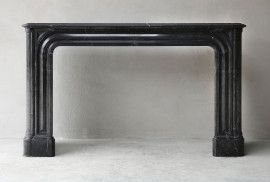 Beautiful antique marble fireplace from Nero Marquina marble. This type of marble comes from the North of Spain. In this marble type you see white veins, in contrast to Noir de Mazy marble that is uniformly black in color. This mantelpiece dates from the 19th century and is in Louis XIV style. A beautiful model because of the simplicity and round shapes. Really a beautiful marble that is chic and fits in both a classic and modern home.