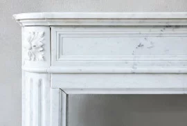 This stunning antique marble chimneypiece showcases the refined elegance of the Louis XVI style, characterized by its curved, symmetrical demi-lune legs. Crafted in Paris between 1860-1880, this piece is made from fine Carrara marble, celebrated for its purity and timeless beauty. With dimensions of 139 cm in width and 105 cm in height, this chimneypiece fits elegantly in a variety of interiors. Its impeccable craftsmanship and perfect condition make it an excellent addition to any classic or modern home. Whether used as a fireplace mantel or decorative feature, this 19th-century piece captures the essence of vintage Parisian design and timeless sophistication.