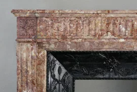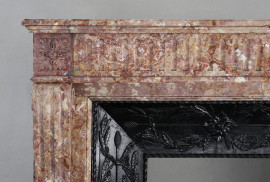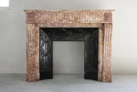 Antique mantle of Brocatelle marble from France in the style of Louis XVI. This 19th century mantelpiece is decorated with fluting in the font part and continuous on the legs. What makes this fireplace special is the cast iron insert that is made for this fireplace.