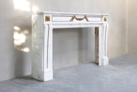 Beautiful antique fireplace made of Arabescato marble! Arabescato is a type of marble extracted from the Apennines mountains north of Carrara, Italy. Arabescato marble has always been veined. This fireplace dates from the year 1880 and is in Louis XVI style with a bronze bandeau de perles and Girlande!