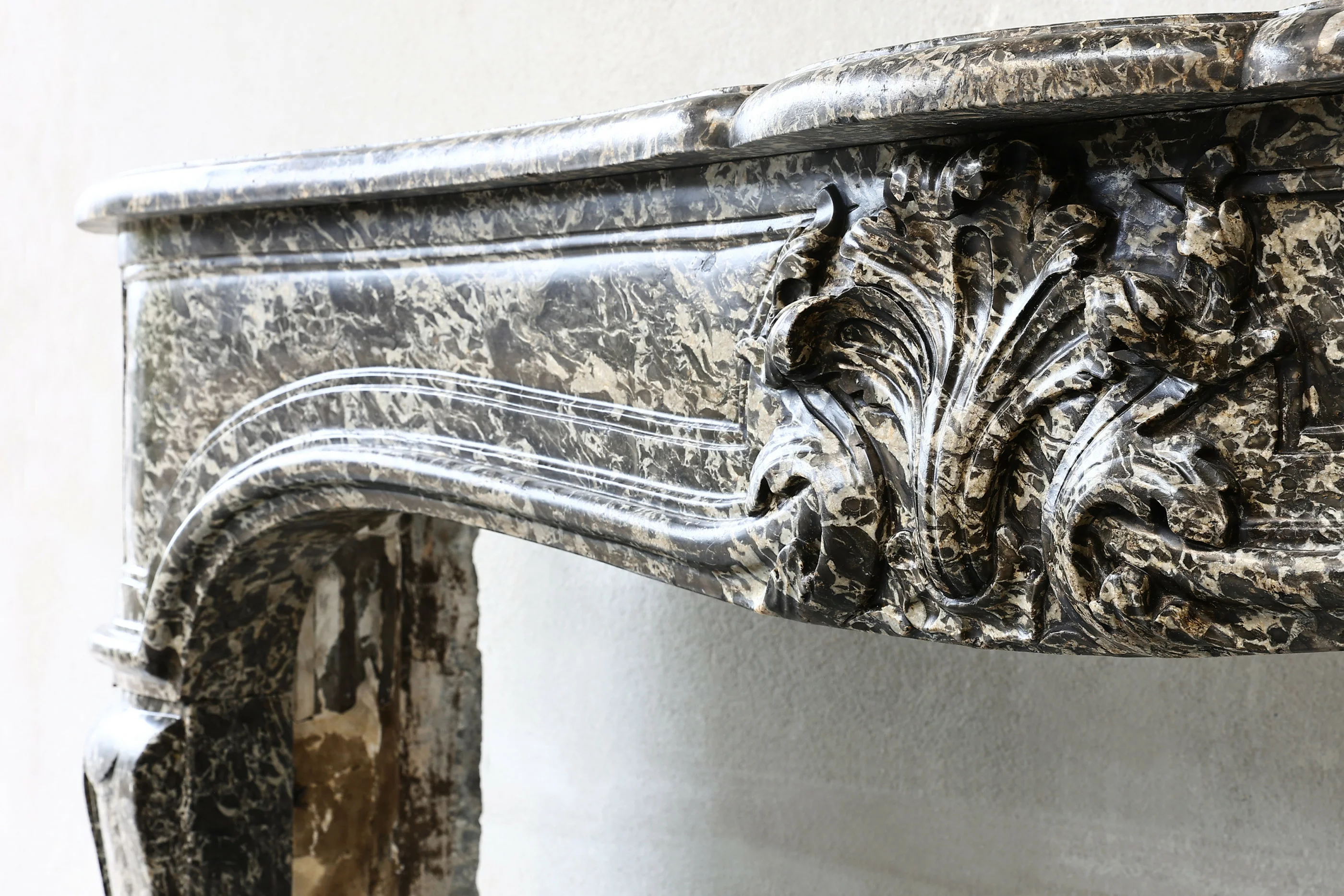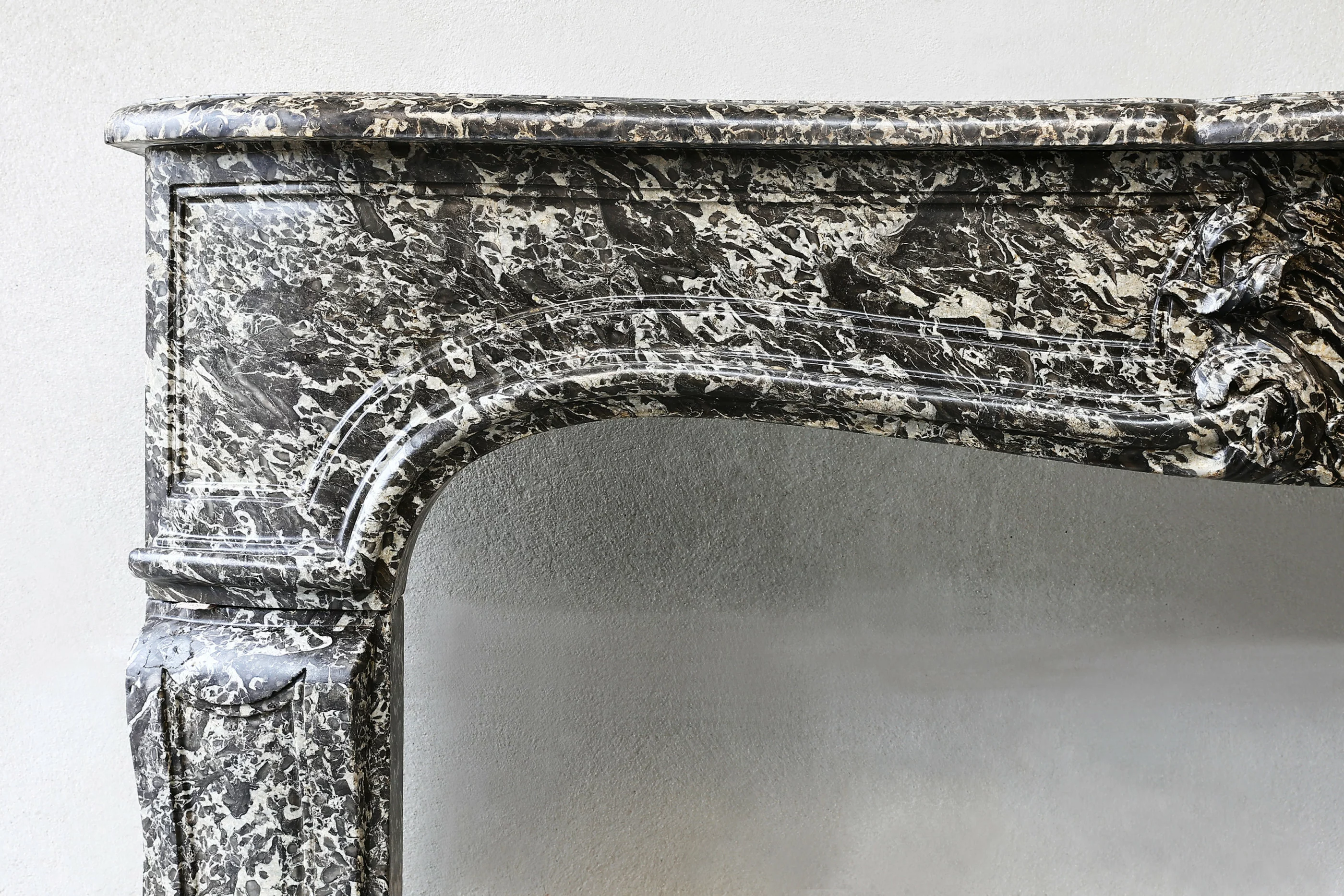 Beautiful antique fireplace of Sint Anna marble from Belgium! This fireplace has a warm color scheme and is in the style of Louis XV, with a scallop in the middle of the front part. A beautiful fireplace dating from the 19th century.