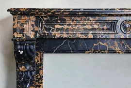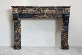 Beautiful antique fireplace of Portoro marble from Italy. A very exclusive and special type of marble that has been extracted from Italian quarries since the 16th century. The marble type is famous for its beautiful black with golden veins. This fireplace is in the style of Napoleon III and comes from the 19th century. This fireplace has a calm design and yet graceful because of the lines and ornaments.