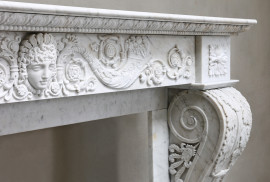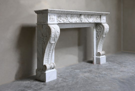 Beautifully crafted antique fireplace of Carrara marble. This fireplace has special ornaments and decorations and has a very chic look! The legs are commanded and graceful. A 19th century fireplace in the style of Louis XVI. A special fireplace with a reasonable width of no less than 165 cm.