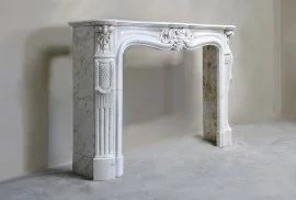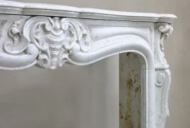 Very beautiful fireplace of white Carrara marble from the 19th century. Carrara marble originally comes from Italy, from the town of Carrara. This city is also called the city of marble because there are many marble quarries around Carrara where marble has been extracted for centuries. This fireplace is in the style of Louis XV and has beautiful ornaments in the front part and on the legs. An elegant fireplace with straight legs with a chic look.