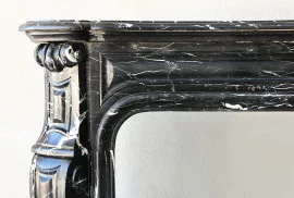 This antique marble fireplace mantel effortlessly complements a range of interior styles. In a rustic country house, it enhances the cozy, traditional atmosphere with its rich historical character. In a modern design, its clean lines and Nero Marquina marble provide a striking contrast, making it a bold focal point. Whether you envision it as a functional fireplace or a decorative centerpiece, this Pompadour chimneypiece can transform your living space, adding a touch of timeless elegance and warmth.