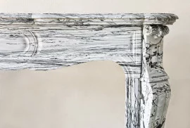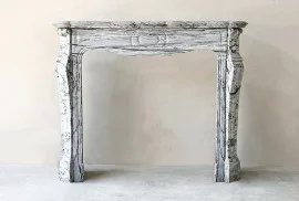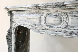 Very chic antique mantelpiece made of Bleu Fleuri marble. This fireplace is in Pompadour style and dates from the 19th century. A beautiful coat in terms of size and appearance! We have many antique fireplaces in stock and can also deliver quickly. Ask about the options at De Opkamer, tel: +31 (0) 162 681522 or email: info@de-opkamer.nl.