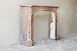 Very beautiful antique mantelpiece made of the warm Sarrancolin marble! This mantelpiece is in Pompadour style and dates from the 19th century. This type of marble has a unique and elegant appearance and is an added value for any interior.