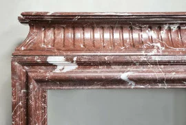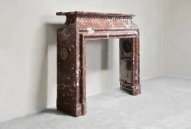 Beautiful antique mantelpiece made of Rouge Royal marble. This warm color scheme creates a lot of atmosphere and appearance! A unique fireplace within our collection from the 19th century in the style of Louis XVI.