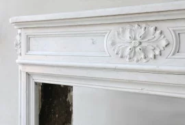 Beautiful compact mantelpiece of Carrara marble from Italy. An elegant antique fireplace with ornaments in the middle on the legs and round shapes! This authentic mantelpiece is in the style of Louis XVI and exudes history and warmth. The size makes this mantelpiece suitable for many interiors.