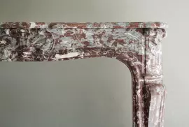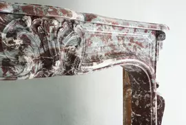 Superb antique marble fireplace from the 18th century, era of Louis XV. Equipped with a beautiful scallop in the middle and a nice molding (frame). The marble type is Gris de Ardennes.