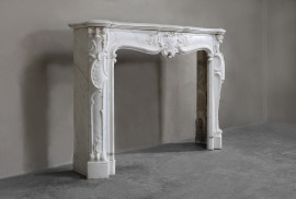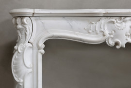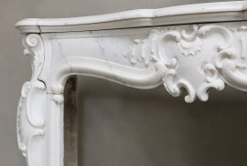 Very beautiful antique mantelpiece made of Carrara marble from Italy with a classic look! This Louis XV style fireplace dates from the 19th century and has beautiful ornaments in the front part and on the legs. An elegant mantle with a chic warm color nuance.