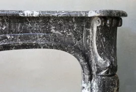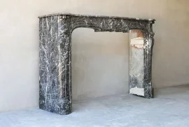 Beautiful chic antique fireplace of Sint Anna marble, a beautiful rustic kind of marble with light veins. This fireplace is in the style of Louis XV and dates from the 18th century. The beautiful veins and ornate ornaments make this fireplace charming.