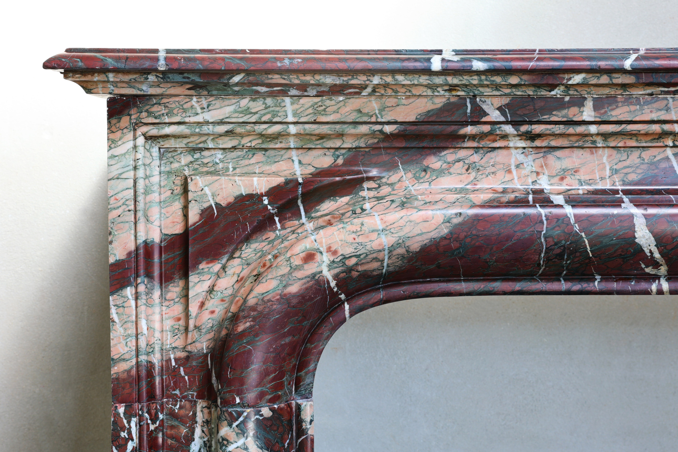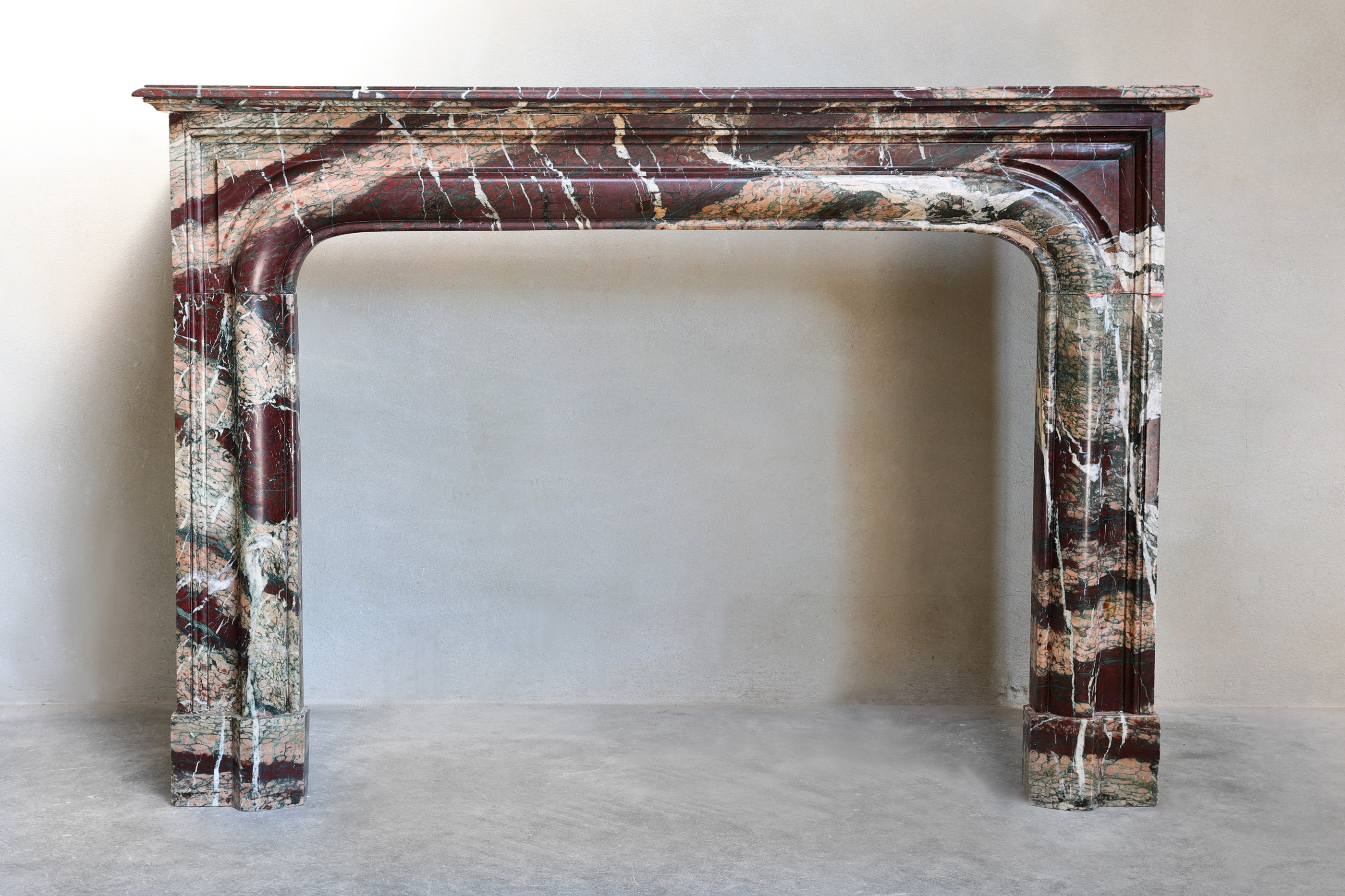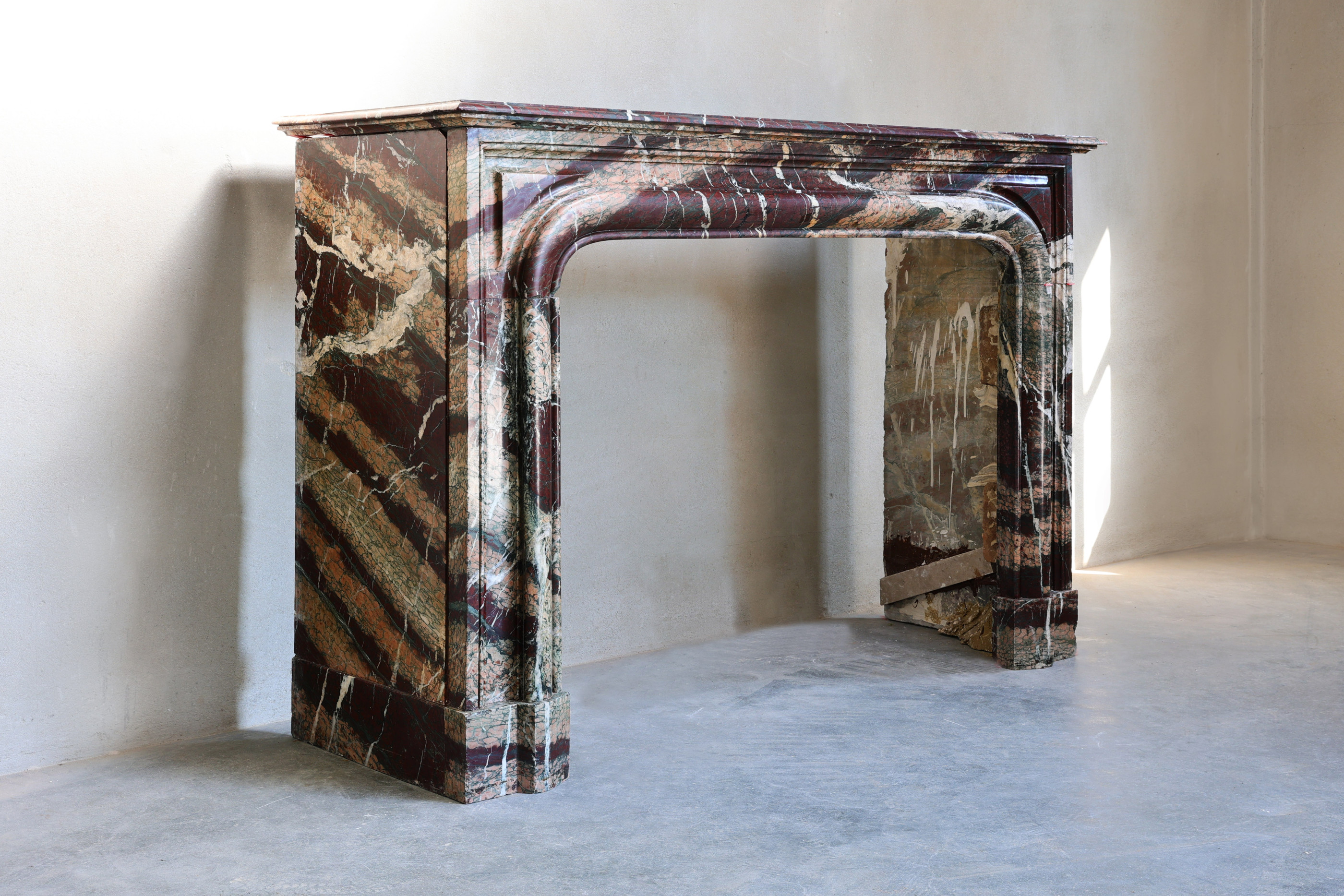 A beautiful antique fireplace of the special marble type Campan Rubane! A unique fireplace in the style of Louis XIV with beautiful lines from 1850 - 1860. The type of marble has a warm color scheme and it is very nice to see how this marble originated in nature!