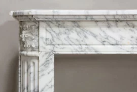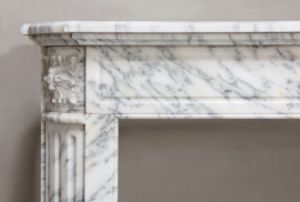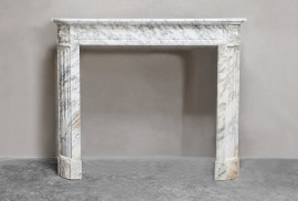This antique fireplace made of statuario marble dates from the 19th century and is in the style of Louis XVI. Statuario marble is one of the classic types of marble that was originally used a lot in Italian palaces. The style of Louis XVI is characterized by the detailed carving and graceful lines and fluting on the legs. A beautiful piece of furniture for any interior.