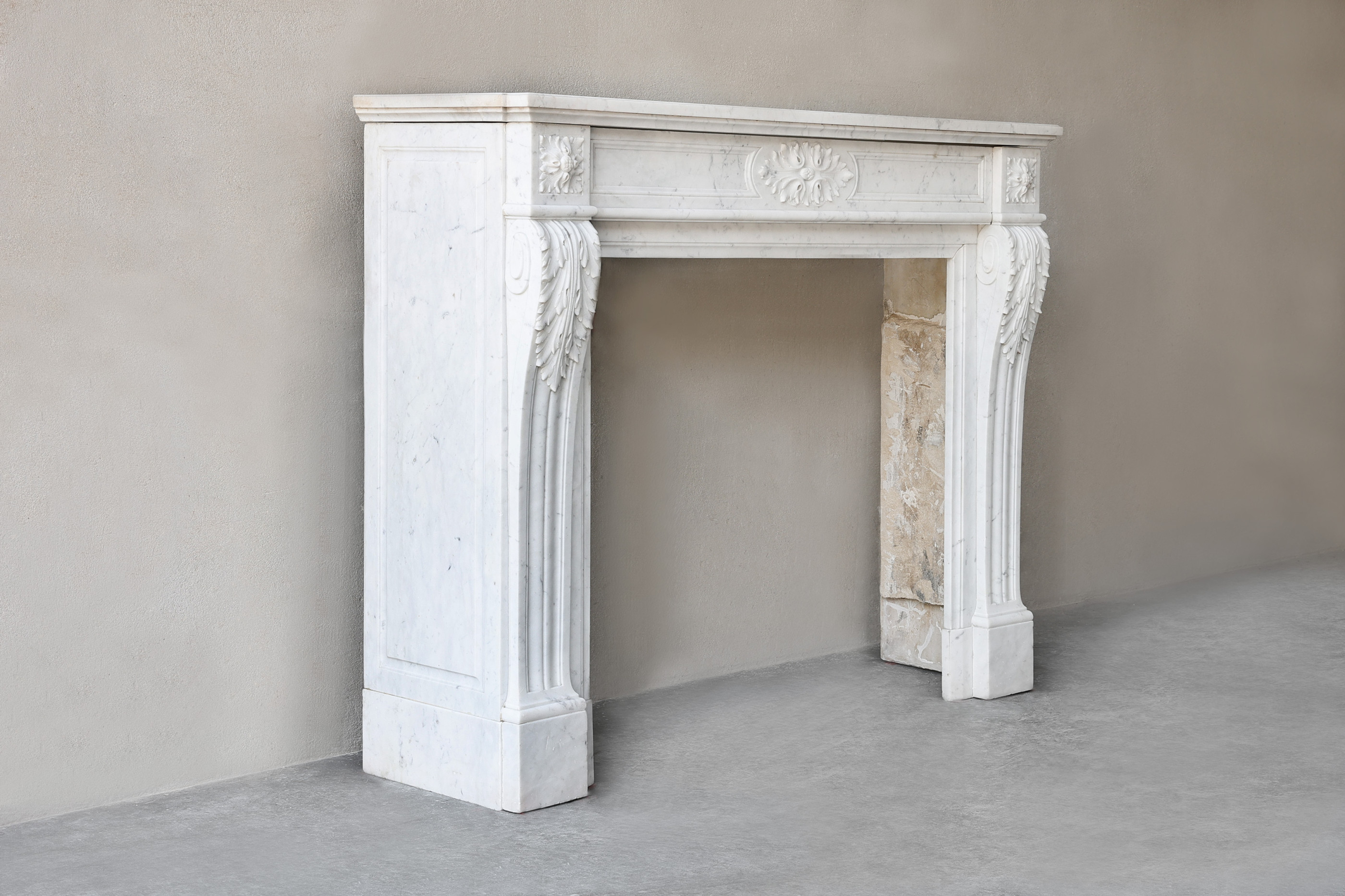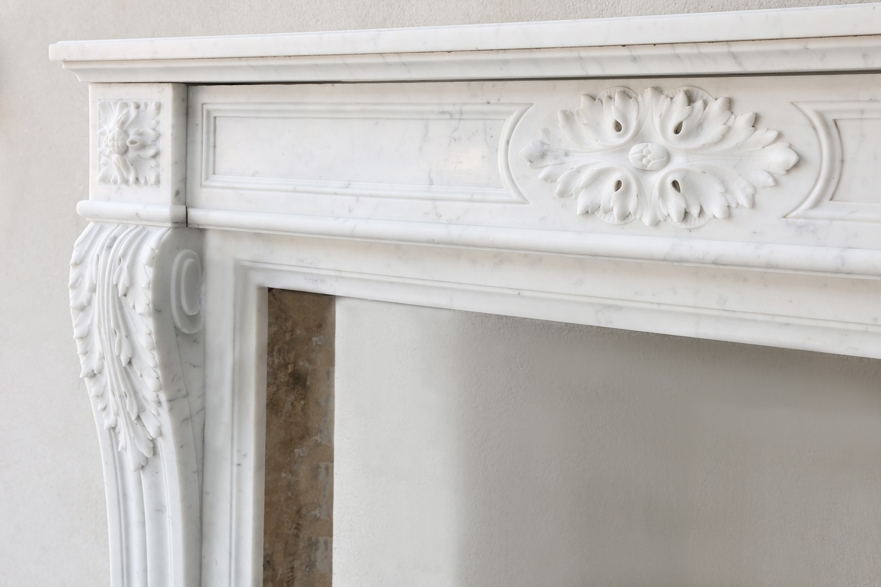 This marble fireplace surround is a versatile addition to both classic and contemporary interiors. In traditional settings, it complements period decor with its refined Louis XVI style, while in modern spaces, it adds a contrasting historical touch. As a marble chimneypiece, it brings warmth and character, creating a welcoming ambiance in any room. Its luxurious Carrara marble finish and elegant detailing make it adaptable to diverse design preferences, making it a highly desirable piece for collectors and interior enthusiasts alike.
