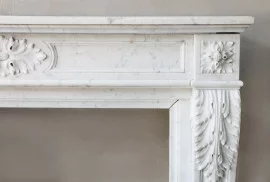This marble fireplace surround is a versatile addition to both classic and contemporary interiors. In traditional settings, it complements period decor with its refined Louis XVI style, while in modern spaces, it adds a contrasting historical touch. As a marble chimneypiece, it brings warmth and character, creating a welcoming ambiance in any room. Its luxurious Carrara marble finish and elegant detailing make it adaptable to diverse design preferences, making it a highly desirable piece for collectors and interior enthusiasts alike.
