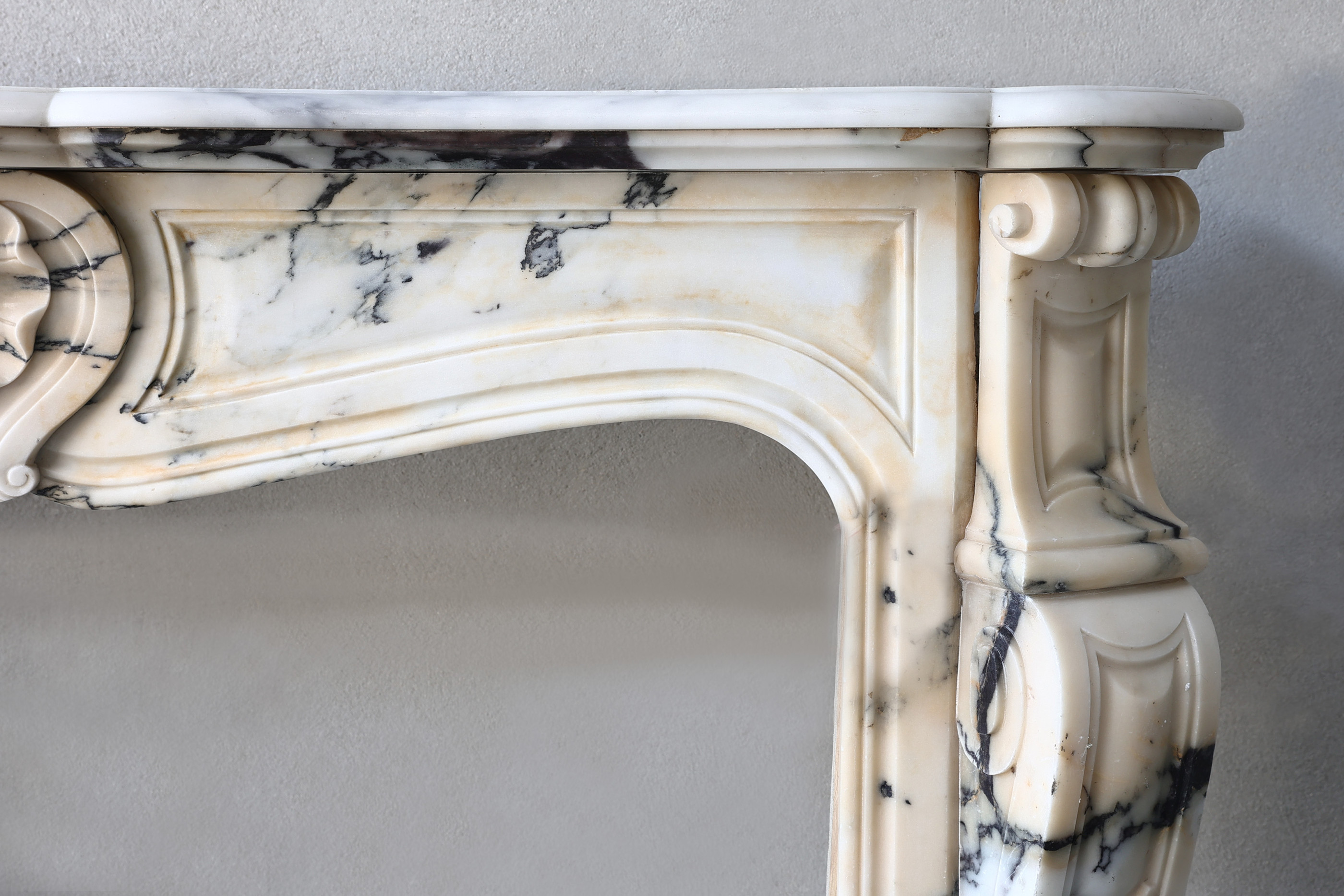 Beautiful antique fireplace of the warm marble Paonazzo from the 19th century in style of Louis XV. This fireplace has very beautiful ornaments and decorations such as a scallop in the middle and decorations on the legs. A fireplace that revives bygone times!