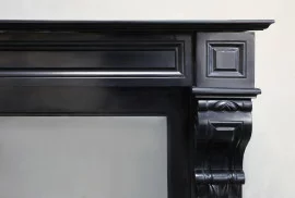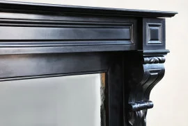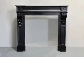Very beautiful antique fireplace of the unique marble type Noir de Mazy from the 19th century! This marble type from Belgium is becoming increasingly rare, because a number of quarries have already closed. This fireplace is elegant and rustic and is in the style of Louis XVI.