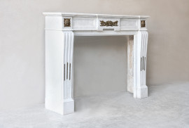 Very beautiful ornate antique mantelpiece of Carrara marble with gold-plated gold from the 19th century. A real eye-catcher in your interior. This mantelpiece in Louis XVI style is provided with gold-plated ornaments in the front, beautiful lines and fluting on the legs.