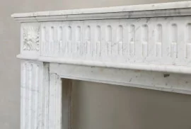 Beautiful antique fireplace from the 19th century in Louis XVI style, made of high-quality Carrara marble. This antique fireplace is straight in shape, characterized by its straight lines, symmetry and rich fluting that give this fireplace a timeless character. An authentic and stylish fireplace that creates atmosphere and a historical appearance.