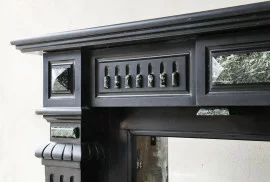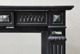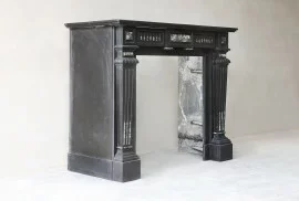 This elegant 19th century mantelpiece is made of Noir de Mazy marble, a rare black stone from Belgium, with a small piece of green Vert de Mer marble incorporated. The deep colour and fine details give this fireplace a classic and stylish look. With its sleek lines and subtle decorations, this mantelpiece fits perfectly into both a classic and modern interior. It is a unique and timeless mantelpiece that adds atmosphere and character to any room. A special piece of history for those looking for something truly special.