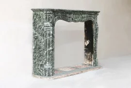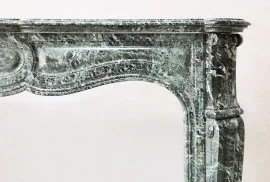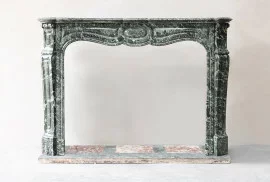 Discover this rare antique marble fireplace from the 19th century, made of exclusive Vert de Mer marble in elegant Pompadour style. With graceful lines and classic craftsmanship, this is a refined showpiece for any interior. Ideal for lovers of French antiques, classic fireplaces and exclusive marble work.