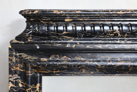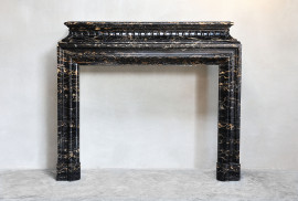 Beautiful unique fireplace of Portoro marble. Portoro marble has its origin in Italy and is a very nice warm marble of dark brown/black with beautiful flamed veins! This antique fireplace dates from the 19th century and is in the style of Louis XIII. A very nice fireplace with fluting in the front part and beautiful lines.