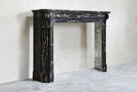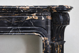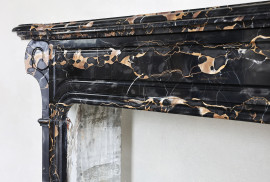 Beautiful antique fireplace of Portoro marble from Italy. This type of marble is dark brown in color with brown/gold veins, a very warm color scheme! The fireplace is sleek and chic in design and has graceful legs. That makes the fireplace a special item. This mantle dates from the 19th century and is in the style of Louis XVI.