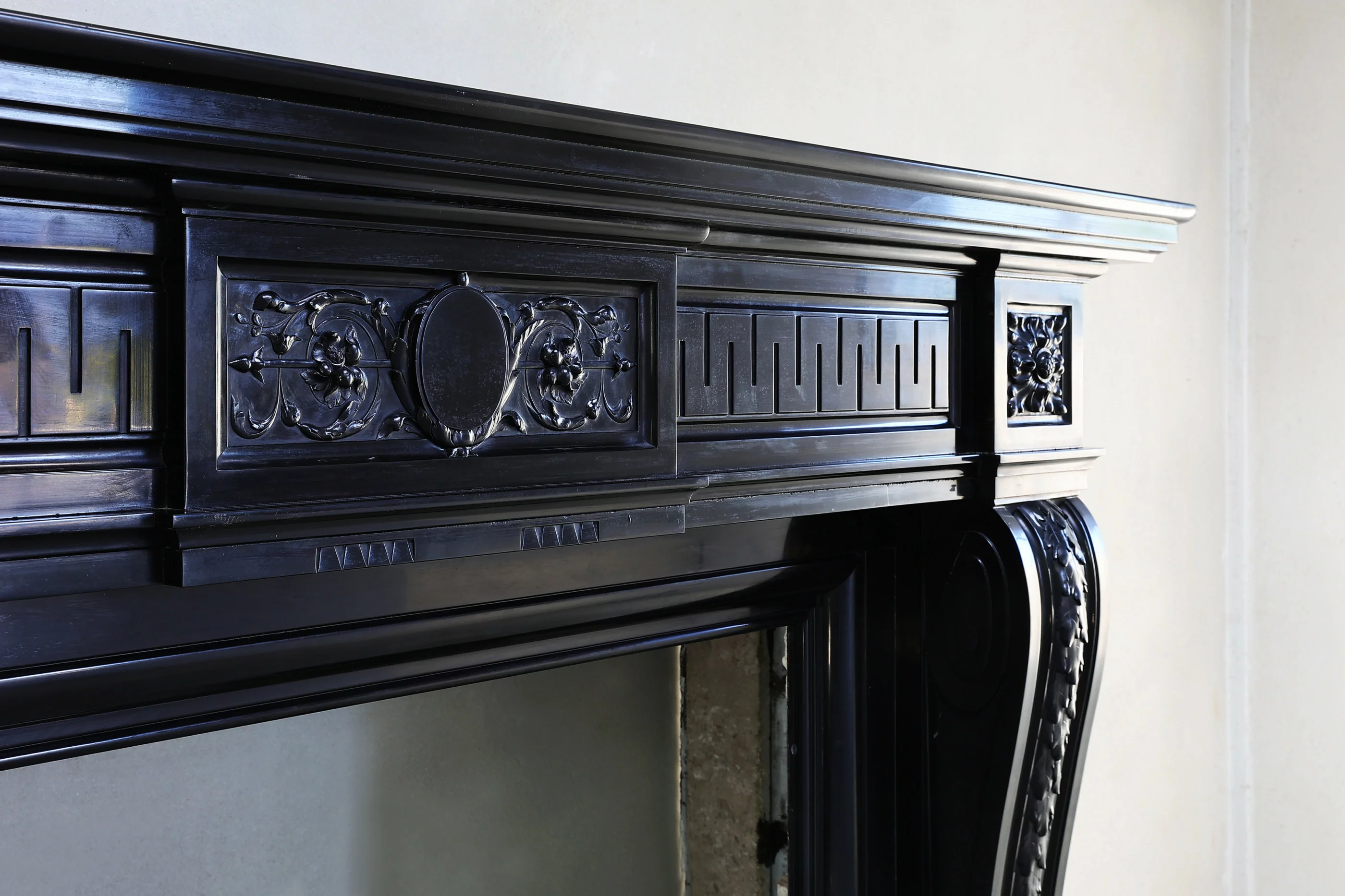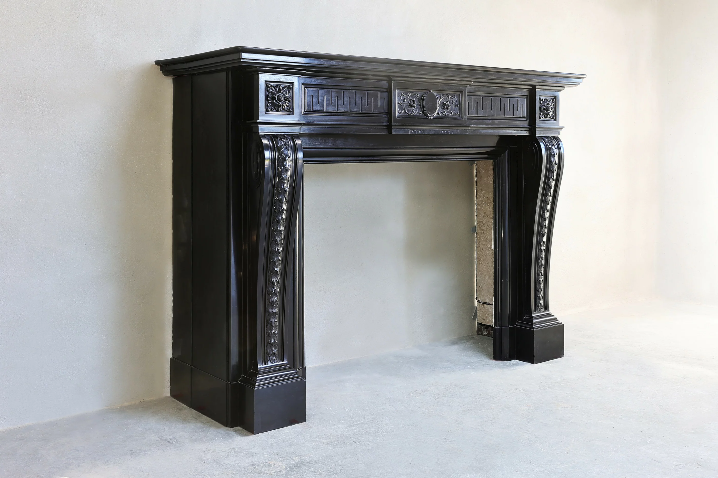 We recently took this beautiful antique fireplace of Noir de Mazy marble from a beautiful building in Brussels! This 19th century fireplace has been modified with decorative elements in the front and on the legs. A very chic mantle that would fit very well in old mansion or classic house. Would you like more information about this fireplace? Send an email to: info@de-opkamer.nl or call: +31 (0)162-681522.