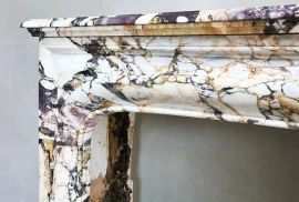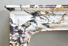 Beautiful antique fireplace of Breche marble from the 19th century in the style of Louis XIV. This special marble fireplace is colorful and sleek! The combination of this marble type and shape creates a unique fireplace.