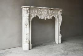 This beautifully crafted antique marble fireplace dates from the baroque era. Baroque time is characterized by an abundance of form and decorations as you see. Especially decorations such as curls, shells, acanthus leaves and rosettes are often seen with this type of fire! A unique specimen for us, partly because of the exclusive marble type Statuario, a white marble from Italy.