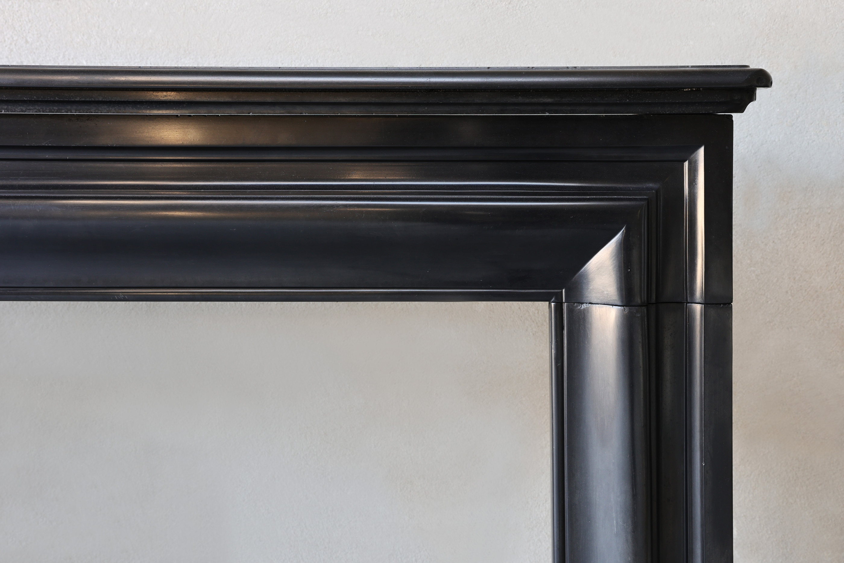 This timeless elegant 19th century fireplace is made of the rare marble Noir de Mazy marble, the deep black Belgian marble known for its luxurious appearance. Executed in the refined Louis XVI style, this fireplace exudes pure class and craftsmanship. The sleek lines and classic proportions make it a showpiece in any interior. A unique heirloom with character.