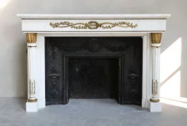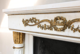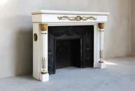 - A historic fireplace surround, often marble, crafted before the 20th century and valued for its age and craftsmanship.
