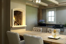 Our hand-cut fireplaces are made to measure in France by stonemasons for you. You can give us the desired dimensions and we will make sure that you receive a customized hand-cut fireplace. The material we use for this is French limestone. You can choose from different styles, from a Louis XV to Campagnarde style. The different styles, sizes and decorations will determine what your fireplace looks like.
