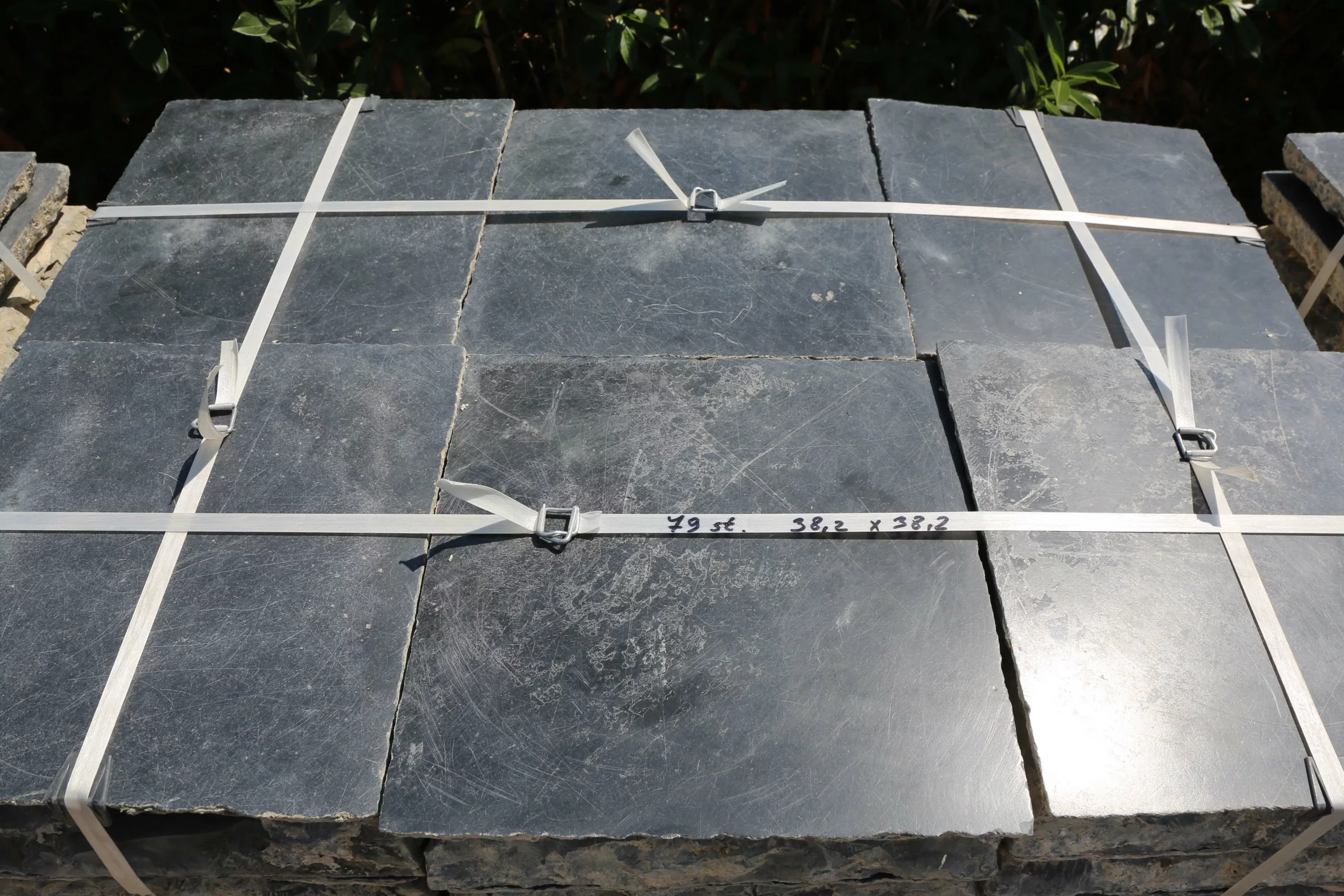 We often have various parts of beautiful antique church slabs from churches and/or monasteries. The color is dark gray/black nuanced and contains no fossils, in contrast to our blue stone dalles. This floor gives an authentic look to your floor and is truly beautiful once it has been laid. A floor that is timeless and lasts for life.