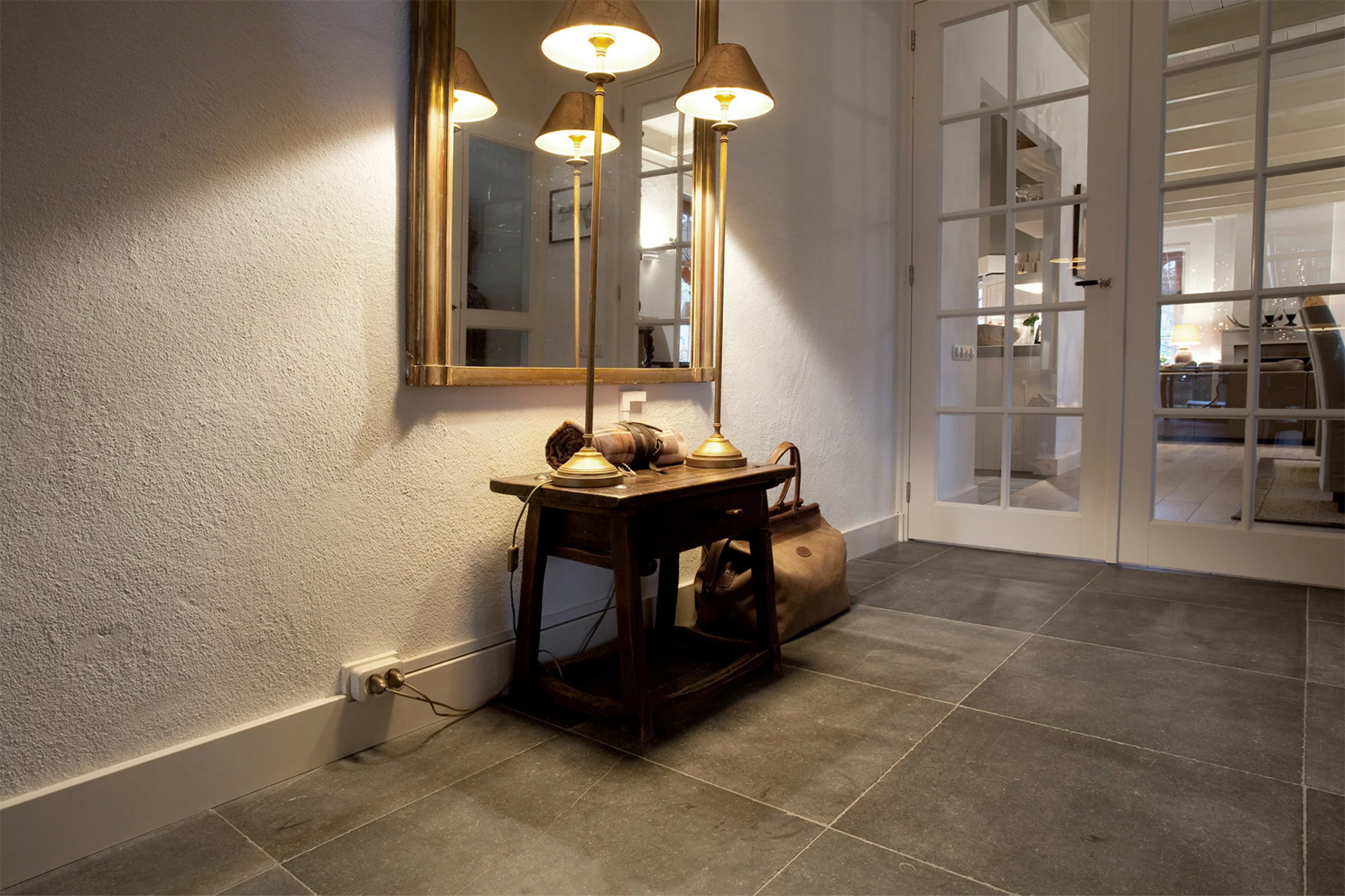 We sanded our "Oud Brabant" floor with a very rough diamond grain so that the floor remains matt. We are charmed by quiet matt natural stone floors. We can supply this sanded Belgian freestone floor in all sizes.