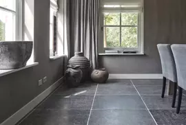La Bourse is our manually antiquated Belgian bluestone floor. This bluestone floor gives an authentic look to your interior by the many shades of color and the manual finishing where we have combined different finishing techniques to give the blue stone floor extra character.