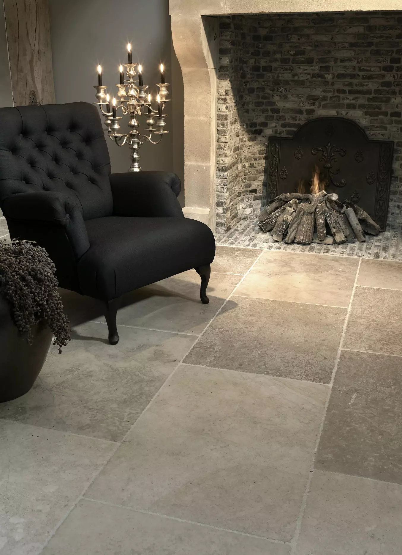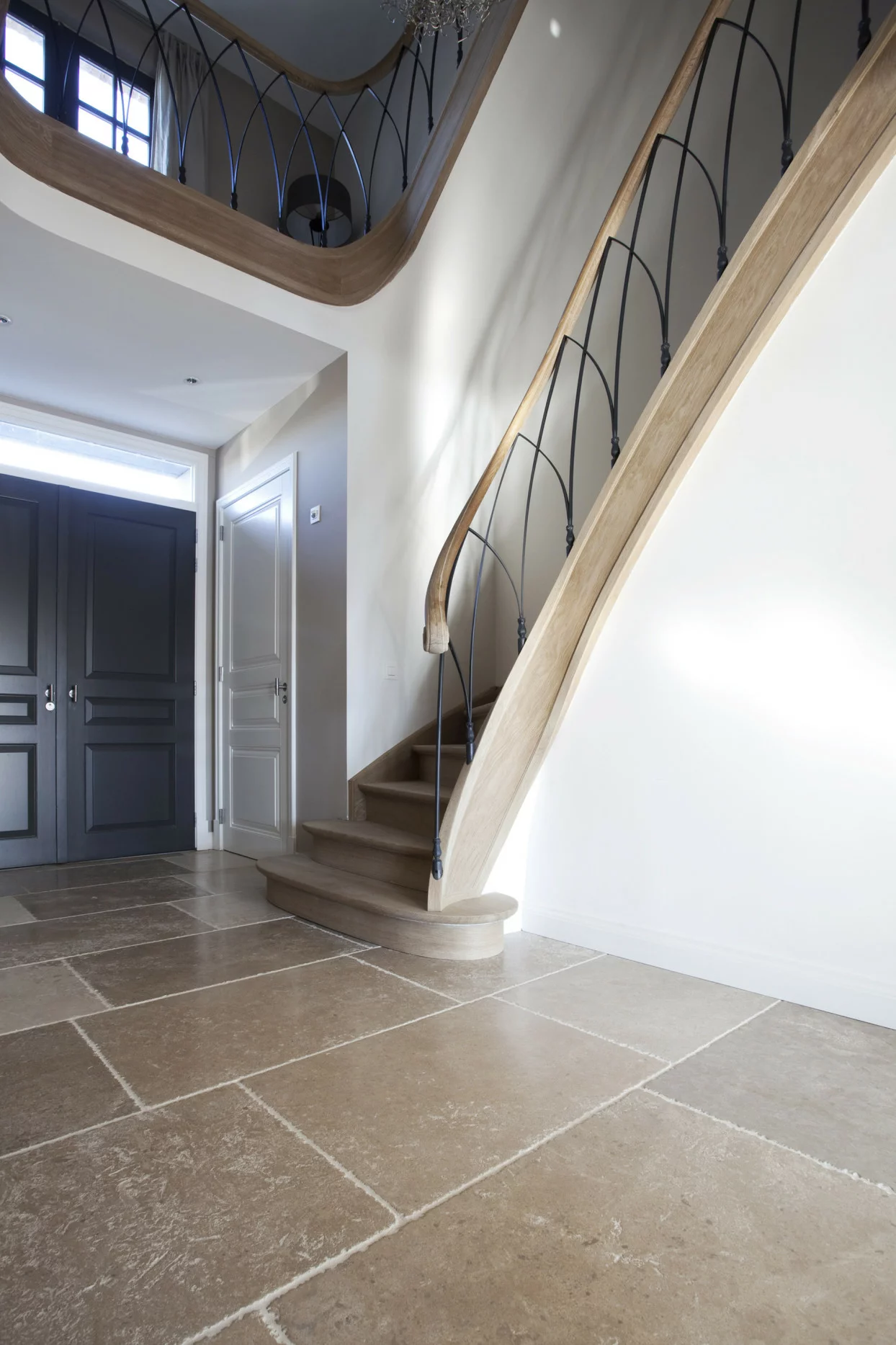 A beautiful floor of Burgundy slabs. The beautiful color scheme and authentic look ensures that your floor is and remains attractive and timeless.