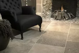 A beautiful floor of Burgundy slabs. The beautiful color scheme and authentic look ensures that your floor is and remains attractive and timeless.