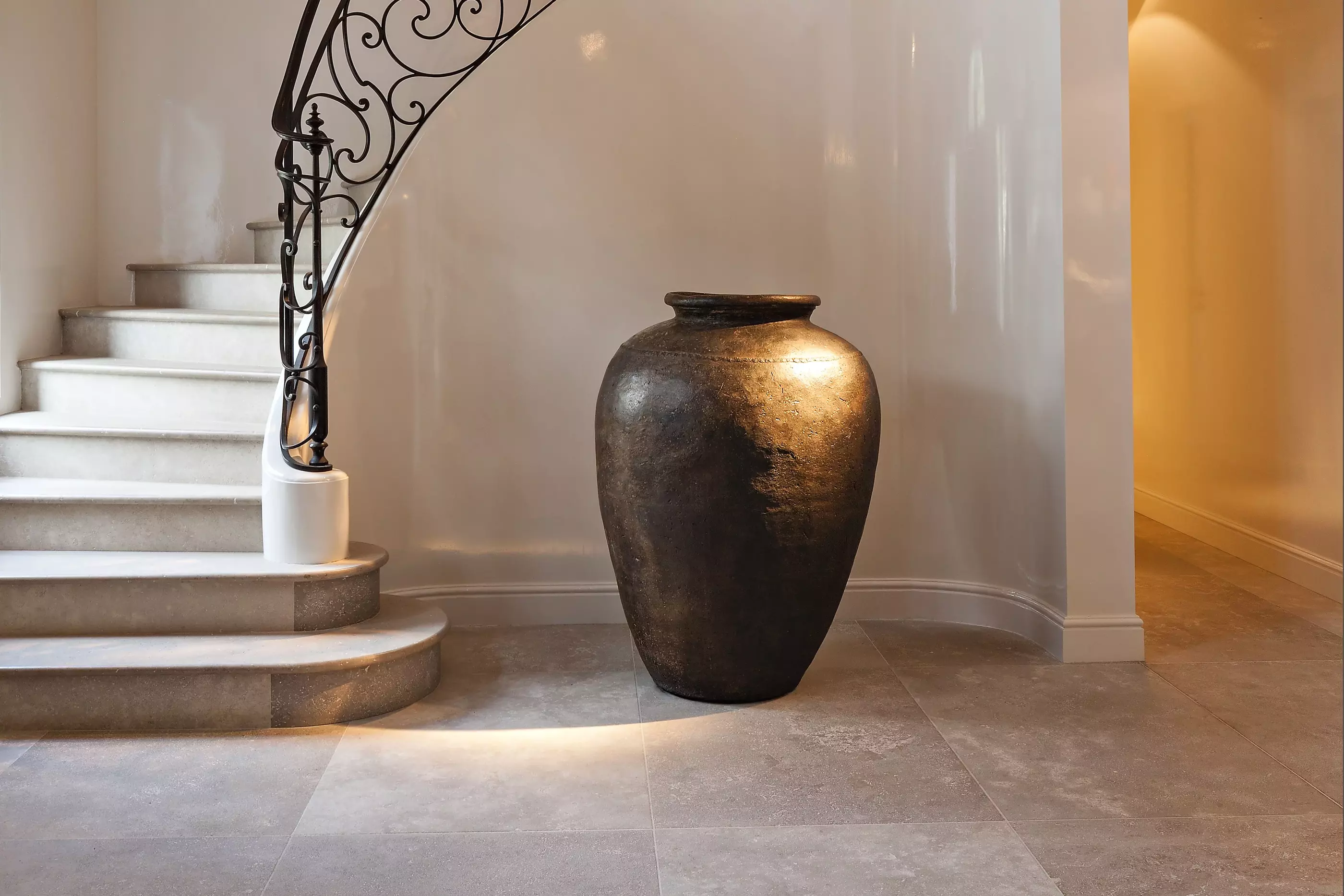 Beautiful floor of 1st choice Italian travertine. Because this travertine floor with attention and only subtly antiquated, our floor L 'Authentico gets an authentic and modern look. The floor is ideal in combination with underfloor heating. The travertine floor is frost resistant and is therefore often extended on the outdoor terrace.