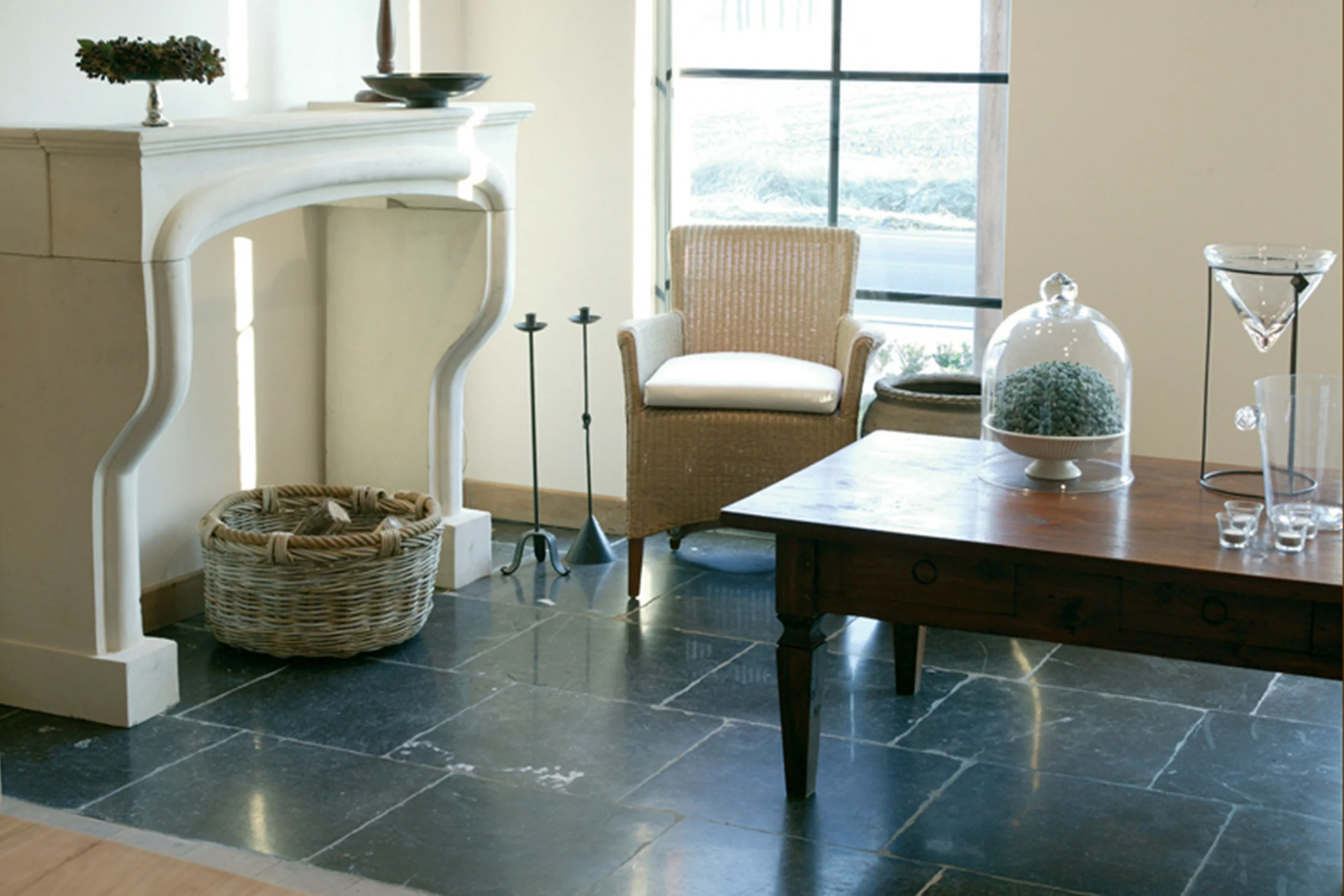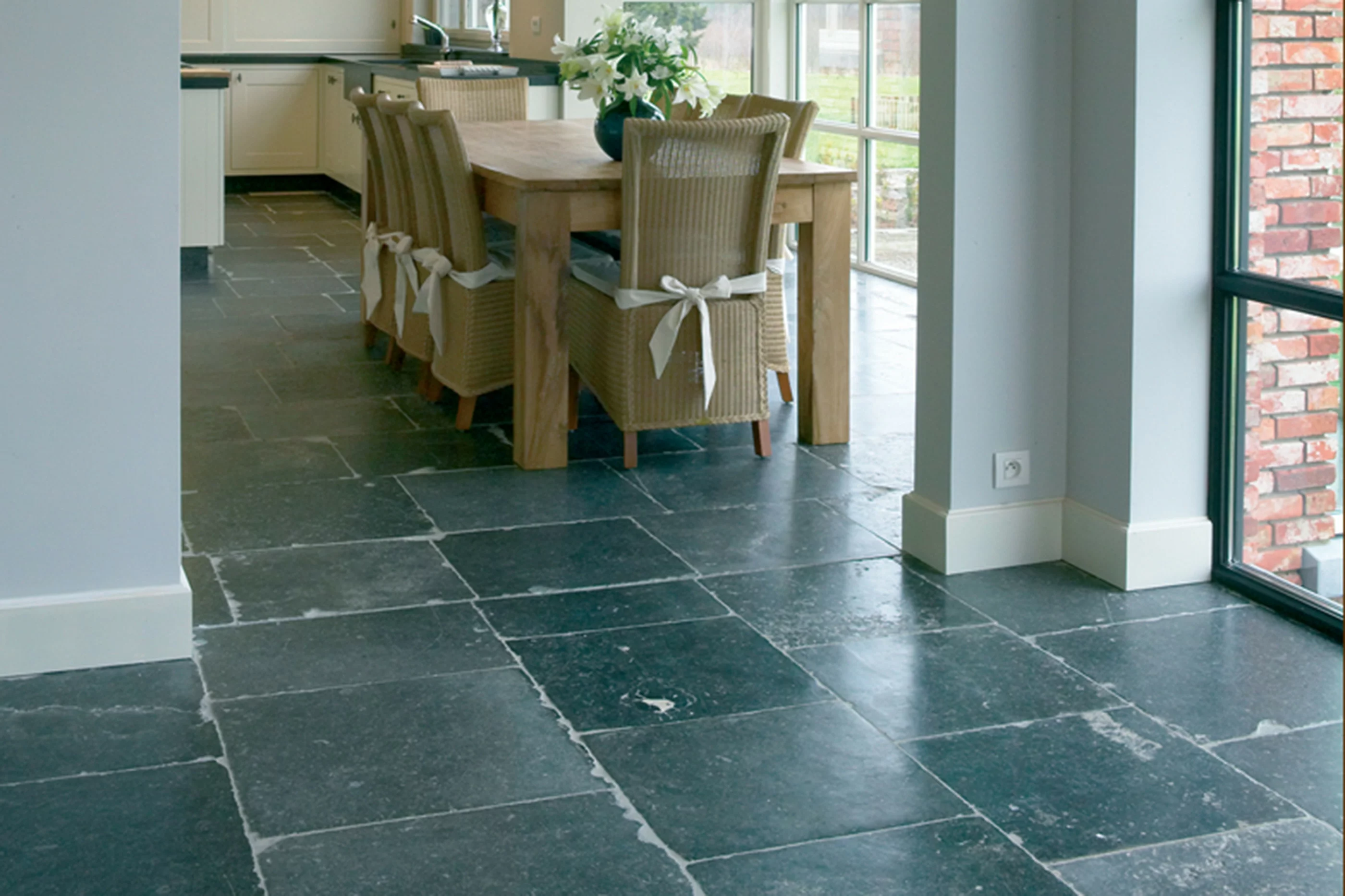 We can calibrate these old Belgian Bluestone flooring to a thickness of 3 cm at € 47,50 per square meter ex VAT |