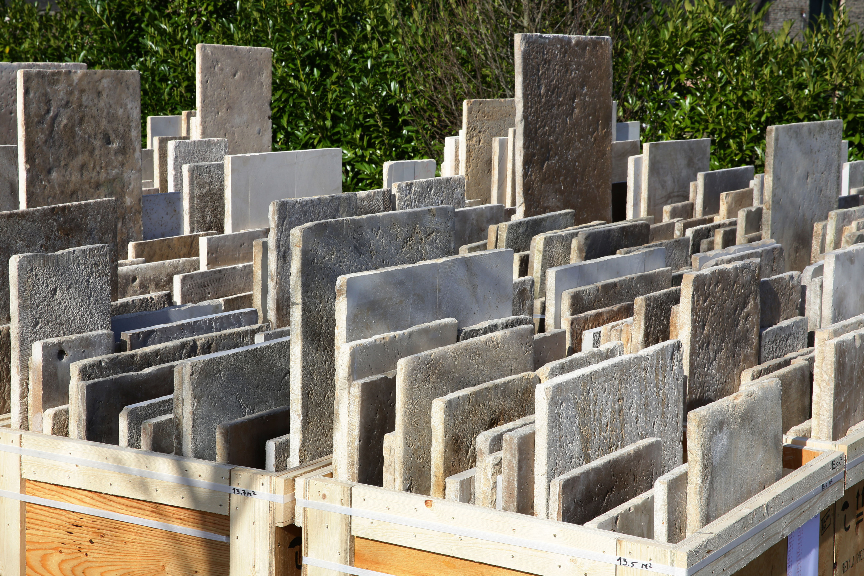 Calibrating antique Burgundy slabs to 3 cm thickness: +€50.00 per square meter (ex. VAT)