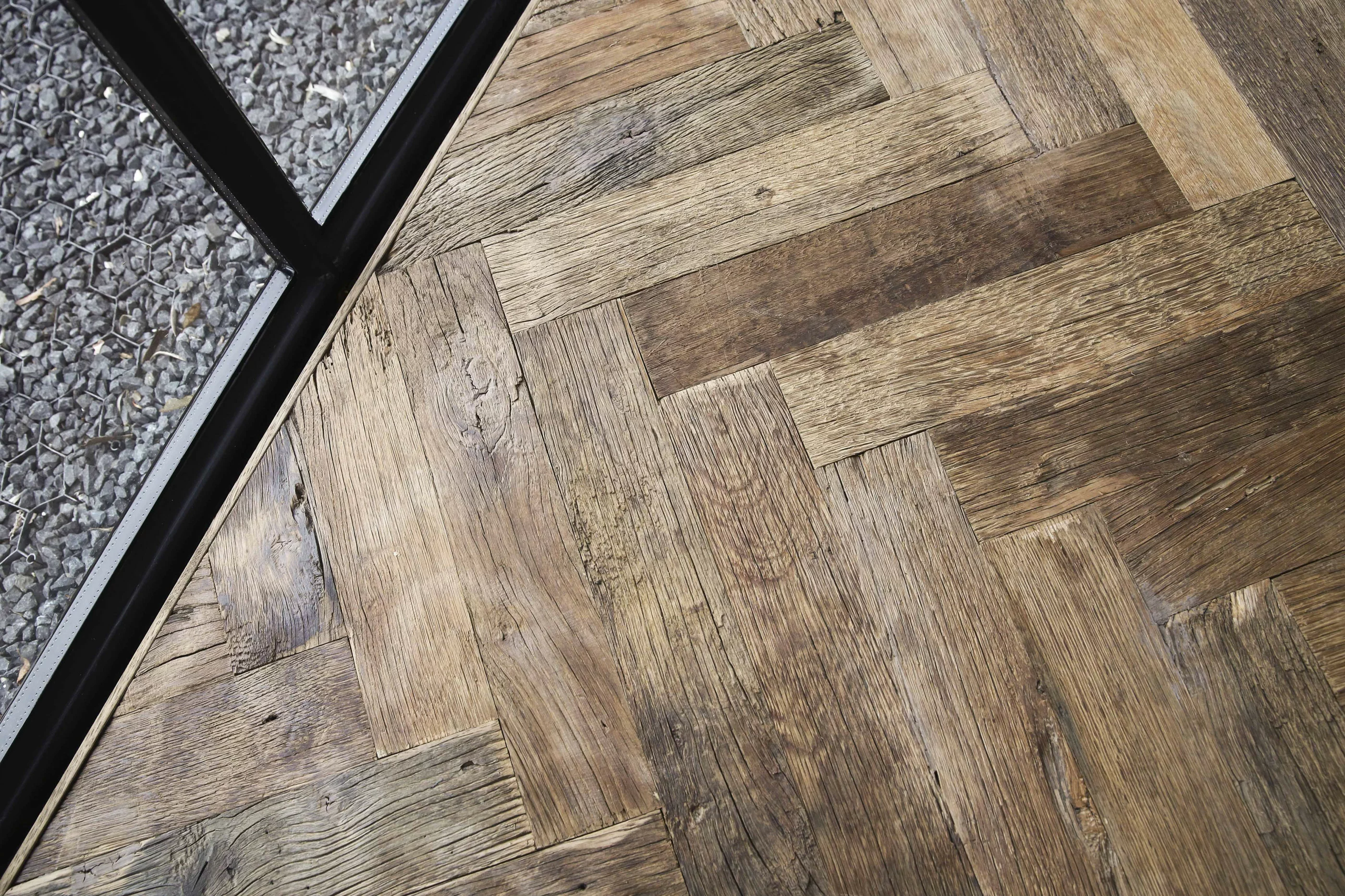 A herringbone floor is timeless and is a floor for a lifetime! We supply this exclusive old herringbone floor as an engineered floor so that it is suitable for underfloor heating. The oak top layer is 7 mm thick. The oak parts are at least 200 years old and have the 'imperfections' that give your home the right appearance and character.