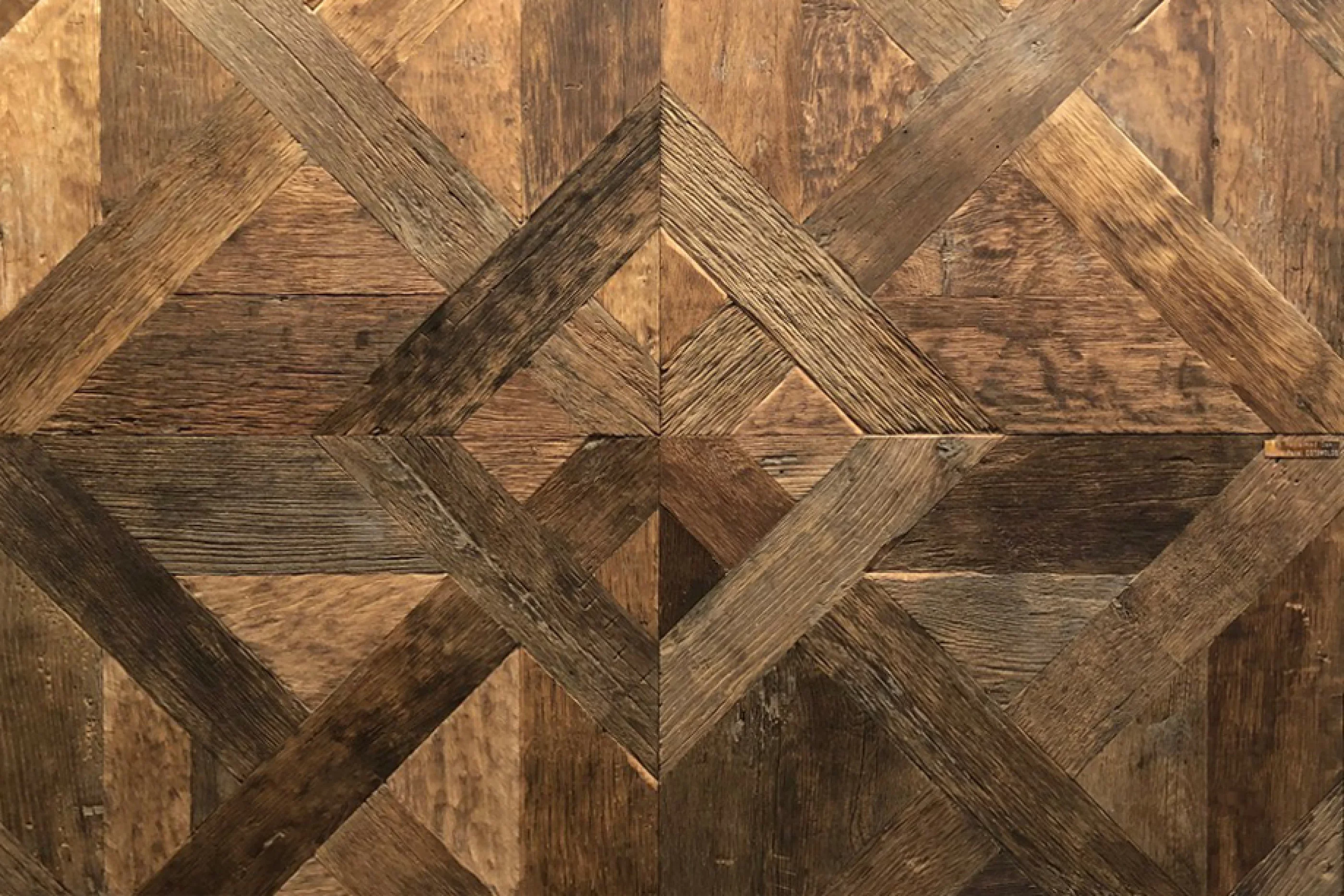 From the 17th century, the Versailles parquet already exists. This parquet consists of square oak panels with a diagonal wickerwork, framed with oak strips in a windmill setting. This old floor is ideal for underfloor heating and has a top layer of 7 mm oak. A beautiful floor that is timeless and lasts a lifetime!