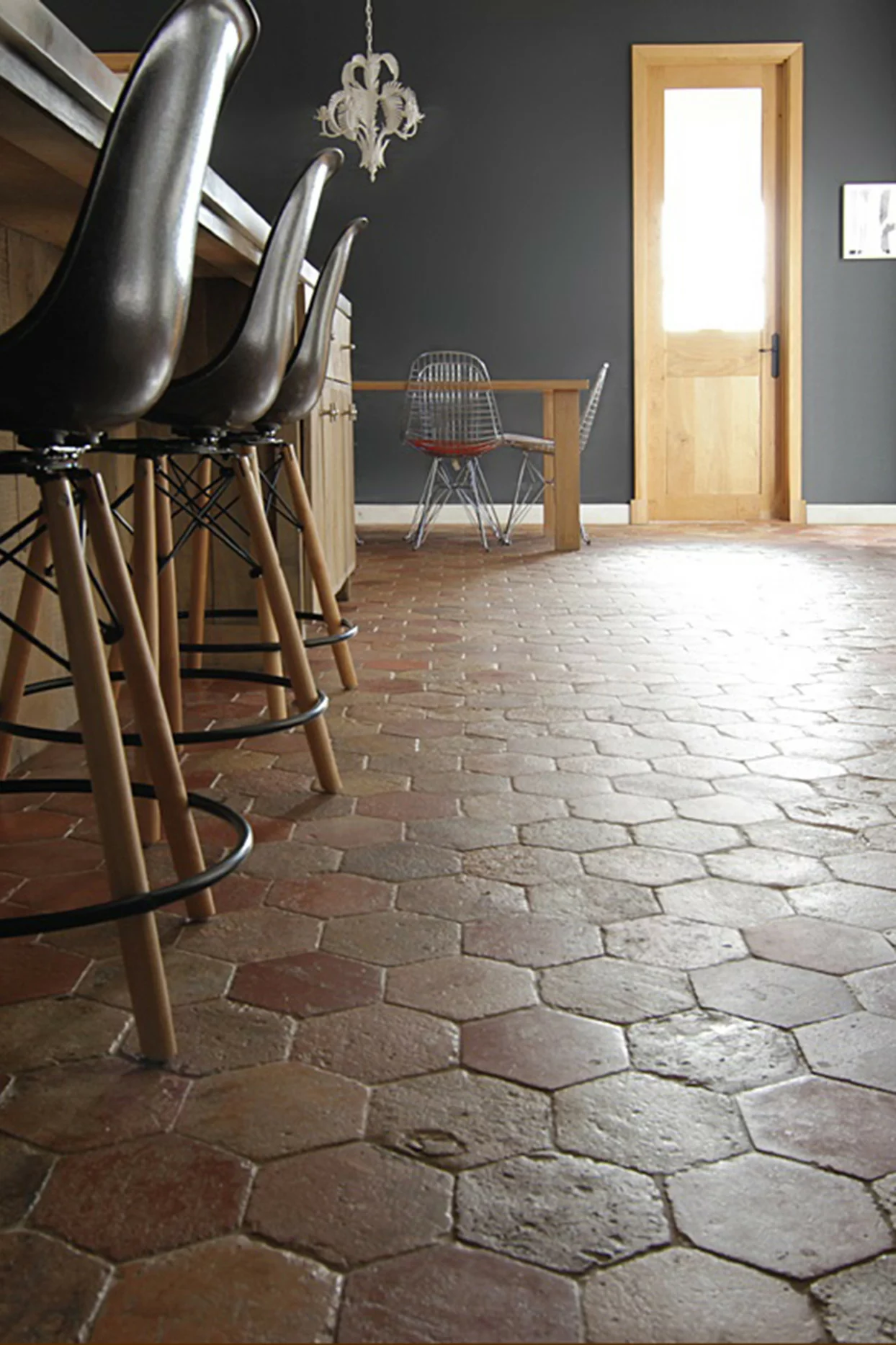 Hexagon means 6-sides and that immediately indicates how the appearance of this beautiful tile looks like. The pattern is also called honeycomb. The hexagonal tiles are available in various shades of color. This floor just gives a different look to your interior!
